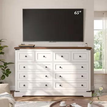 10 Drawer Antique White Dresser – Farmhouse Style Bedroom Storage Chest