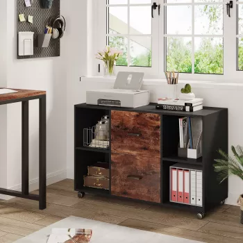 2-Drawer Wooden Filing Cabinet with Printer Stand & Rolling Wheels