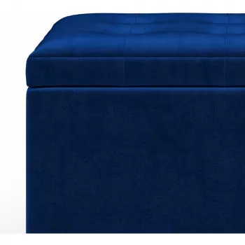 34-Inch Blue Velvet Storage Ottoman Bench with Tufted Top for Living Room