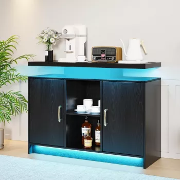 40" Floating Buffet Cabinet with LED Lights & Charging Station - Black Storage Unit