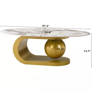47.2" Oval Marble Look Coffee Table with Gold Stainless Steel Base