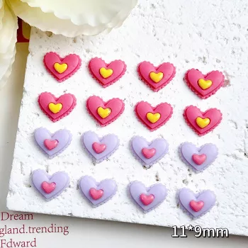 50PCS 3D Luminous Peach Heart Resin Nail Charms – Double Layered Nail Art Decorations