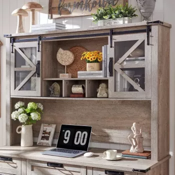 60" Rustic Farmhouse Executive Desk with Hutch and Charging Station