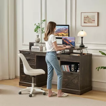 63" Executive Lift-Top Desk with Storage, Charging Station & Sensor Lights