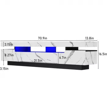 70" Modern White TV Stand with LED Lights & Storage for 75–80 Inch TVs