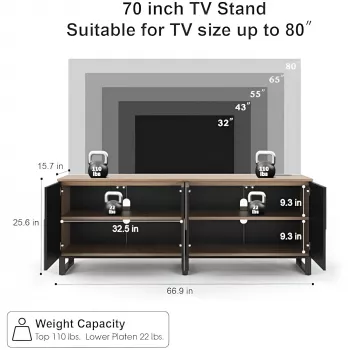 70" TV Stand with Power Outlet & Storage - Modern Black Entertainment Center