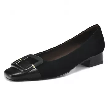 Autumn Suede Sheepskin Slip-On Flats with Metal Buckle
