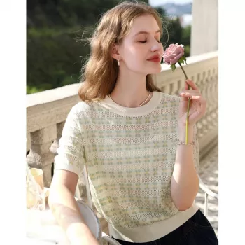 Chic Floral Striped Knit Sweater