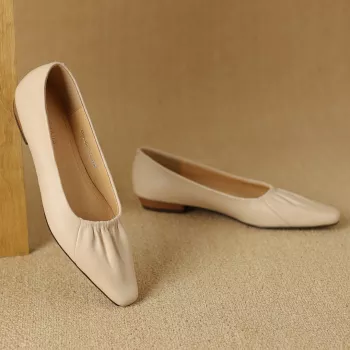 Elegant Women’s Leather Square Toe Slip-On Flats