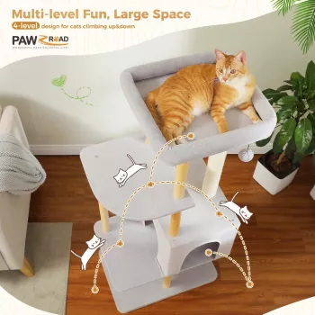 Large 53-Inch Modern Wooden Cat Tree for Large Cats with Scratching Posts