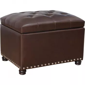 Leather Storage Ottoman Foot Rest with Nailhead Trim - Rectangular Bench Stool