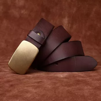 Luxury Genuine Leather Belt for Men - Brass Pin Buckle Strap