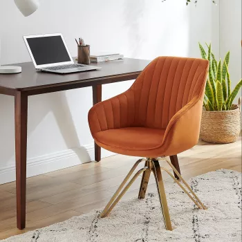 Mid-Century Modern Swivel Desk Chair with Gold Legs, No Wheels, Velvet Upholstery