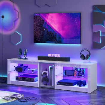 Modern 63" TV Stand with LED Lights & Glass Shelves for TVs up to 70"