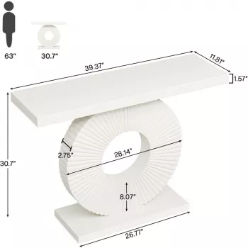 Modern White Console Table with Geometric Base – 40 Inch Entryway & Sofa Table