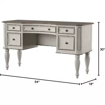 Modern White Vanity Desk with 5 Drawers and Glass Top