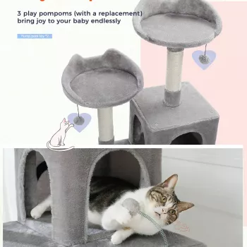Multi-Level Cat Tree Tower with Scratching Posts, Cat Condo, Hammock & Top Perch
