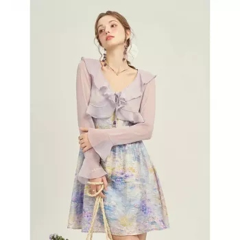 Summer 2024 Purple Flare Sleeve Ruffle Sunscreen Cardigan