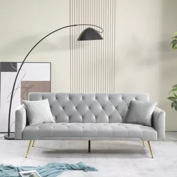 Velvet Futon Sofa Bed with 3 Adjustable Backrest Angles & Pillows