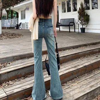Vintage High-Waist Flared Jeans - Women's Casual & Office Wear