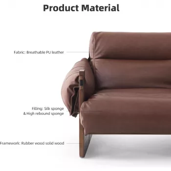 Vintage Solid Wood Lounge Chair with Retro Leather & Deep Cushioned Seat