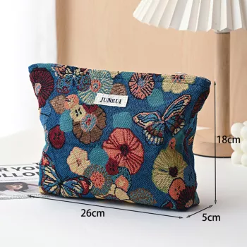 Women's Blue Bouquet Canvas Makeup & Toiletry Bag – Large Capacity Organizer