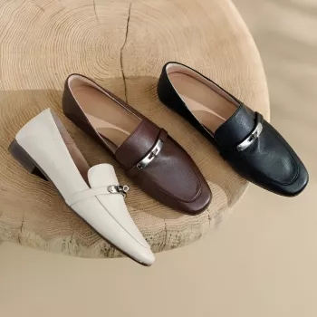 Women's Genuine Leather Slip-On Flats with Metal Detail